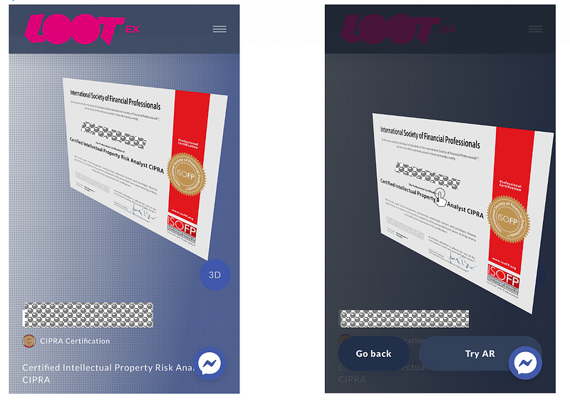 除此之外,此金融證照 NFT 的持有者還可以透過手機使用 AR 展示的功能,就和紙本證書一樣栩栩如生,拿到虛擬證書同樣有把玩欣賞的樂趣。