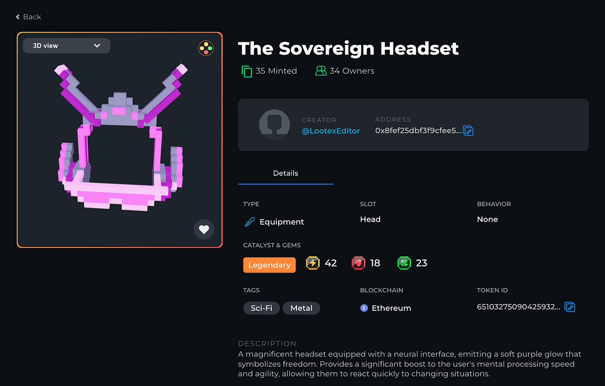 這些限定的裝備 NFT 將在你未來的 The Sandbox 遊戲中扮演重要角色。你將能夠發揮這些裝備的力量,使你的遊戲玩法更加刺激和沉浸。比如說穿上創始者裝備,在 Lootex 自己的土地上完成任務!這樣的想像不必等太久,也許只需要再幾個月就會實現。
