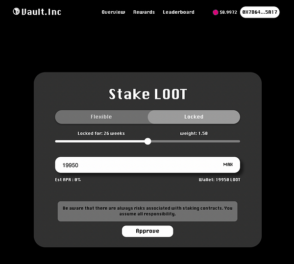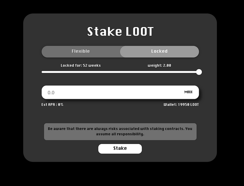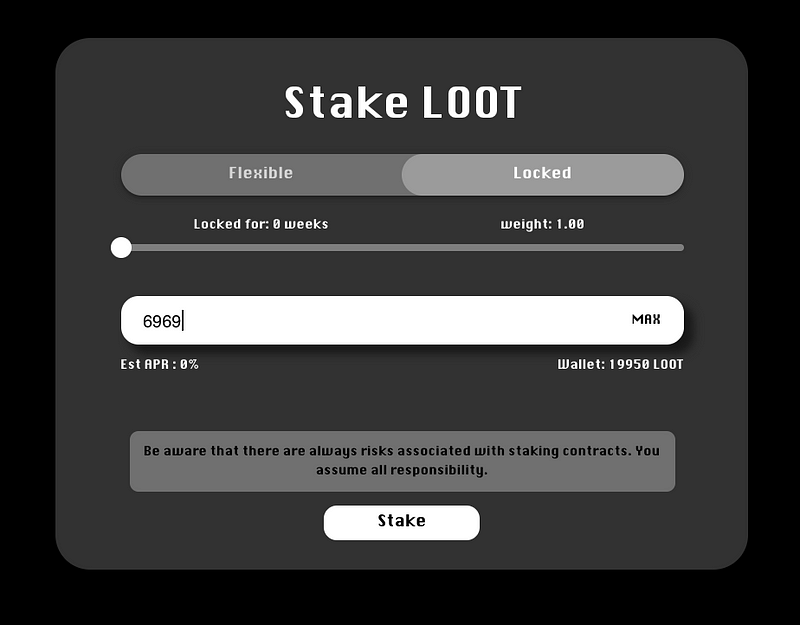 鎖倉獎勵 = LOOT 質押金額 * ( 1 + 鎖倉週數/52)