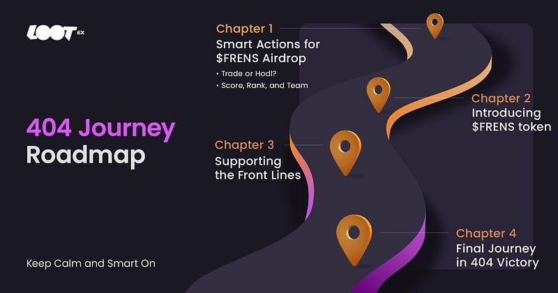 Lootex 不僅在技術上擁抱創新,也始終熱誠的強化使用者參與度和社群活動。 「404 旅程」 活動鼓勵使用者通過體驗開戶到交易的一連串行動,賺取 $FRENS 代幣,並有機會獲得額外獎勵。與一般社群的簡單空投活動不同,為滿足遊戲為中心的平台體驗與用戶喜好,Lootex 為玩家打造具有用戶頭貼的 Smart Frens 聰明朋友系列,並參與戰隊交易競賽活動。Smart Frens 聰明朋友系列全部採用最新的 AI 生成技術,創作出有別於市場上主流且單一背景的 PFP 頭貼NFT,兼具藝術、收藏、交易、身份展示等價值,分別具有六種角色與三種稀缺度,體現用戶的元宇宙身份狀態。總體活動從 2024 年二月起分成三階段於官網和社群同步展開,詳細請上官網 lootex.io