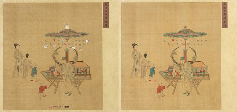HOOHOOLABは宋王朝の〈市擔嬰戲〉を選び、商人が販売している子供向けのオモチャで子供たちの心を引きつけ、数百年前の庶民の生活を再現した。