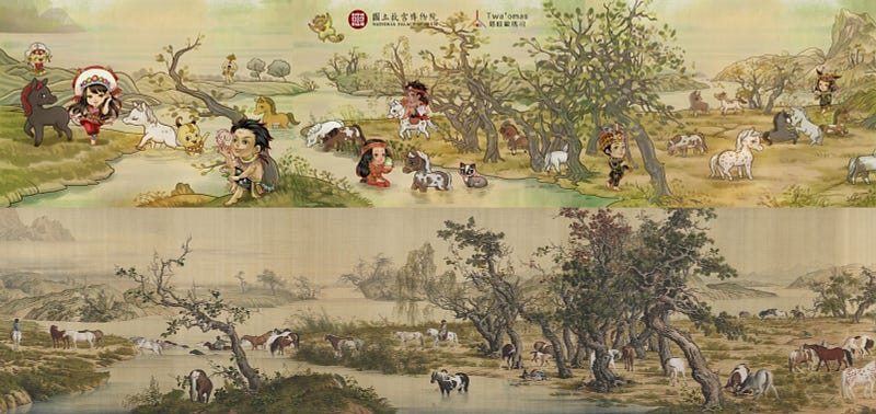 The idea of this art comes from the collection of “Hundred Horses of Qing Lang Shining” in the collection of the National Palace Museum by Twa’omas, depicts the guardian spirit of Taiwan’s aborigines, and horses of various postures, showing the harmonious relationship between human beings and other creatures in nature.