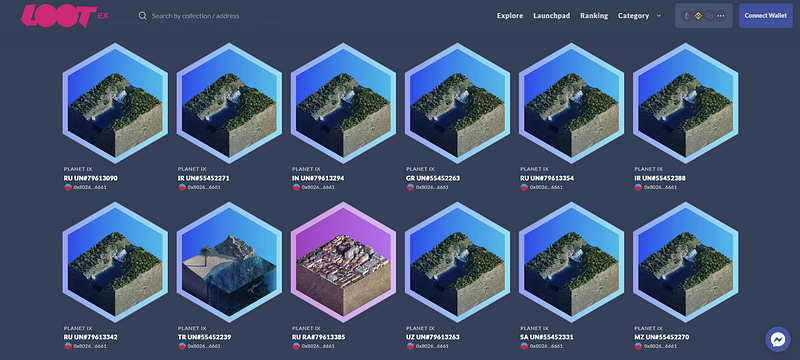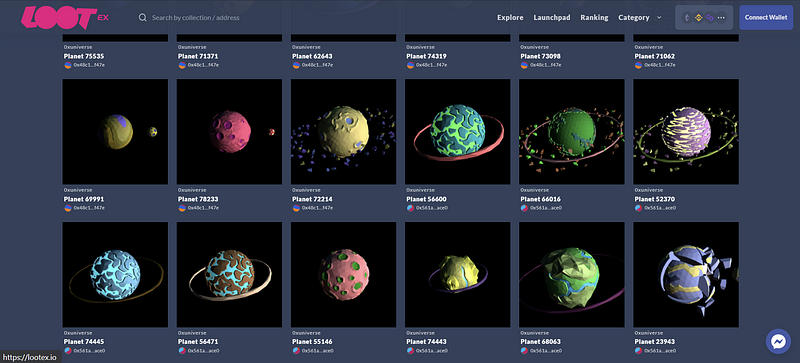 New players create demand for planets cause they need resources to get started. The number of planets is limited and they can only be bought from other players. Each planet is a digital collectible with a unique design and resources — common, rare, epic and legendary planets. All of which can be bought within Lootex.