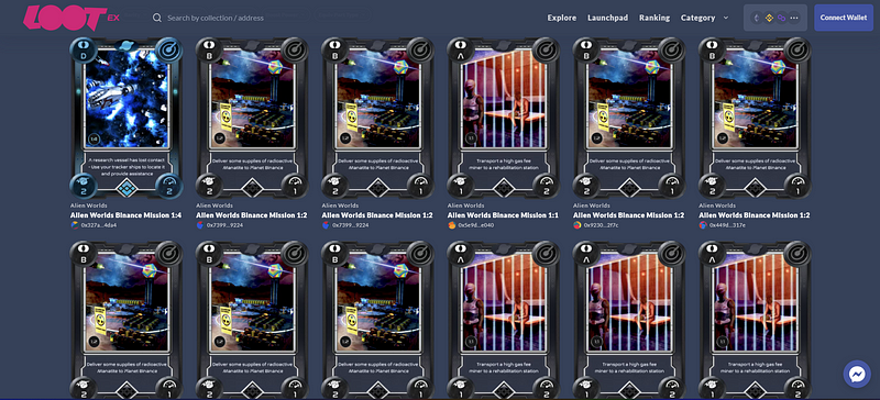 Players may select NFT game cards for their strategy on Binance Smart Chain (BSC) to be used for mining, fighting and missions. There are six different levels of rarity for Digital Items in Alien Worlds. These are Abundant, Common, Rare, Epic, Legendary and Mythical.